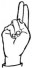 На ћирилици написано КЛАУДИЈЕ ЦВЕЈИЋ састоји се из 14 слова [?]. Исписано ћириличном једноручном азбуком за глувонеме: